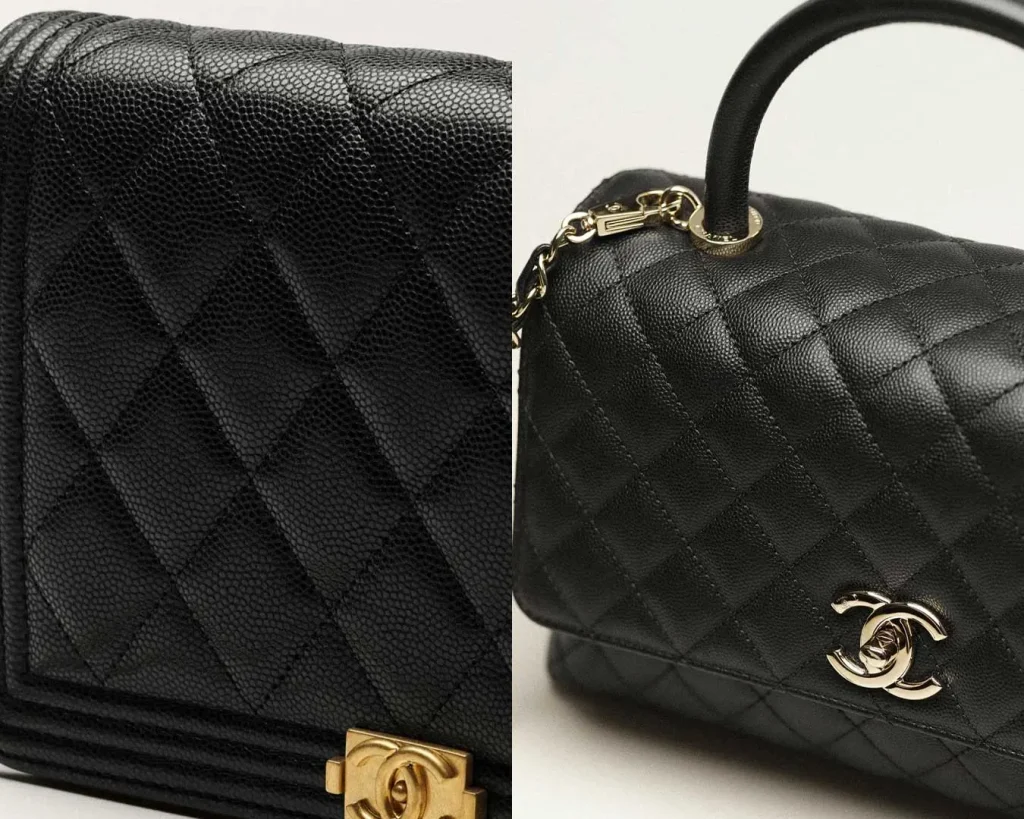 2. คงรูปดีเยี่ยม ไม่ย้วย ไม่ยุบง่าย — กระเป๋าจะคงทรงสวยแม้ใช้ไปหลายปี โดยเฉพาะรุ่นคลาสสิกอย่าง Chanel Classic Flap ที่ใช้หนังชนิดนี้