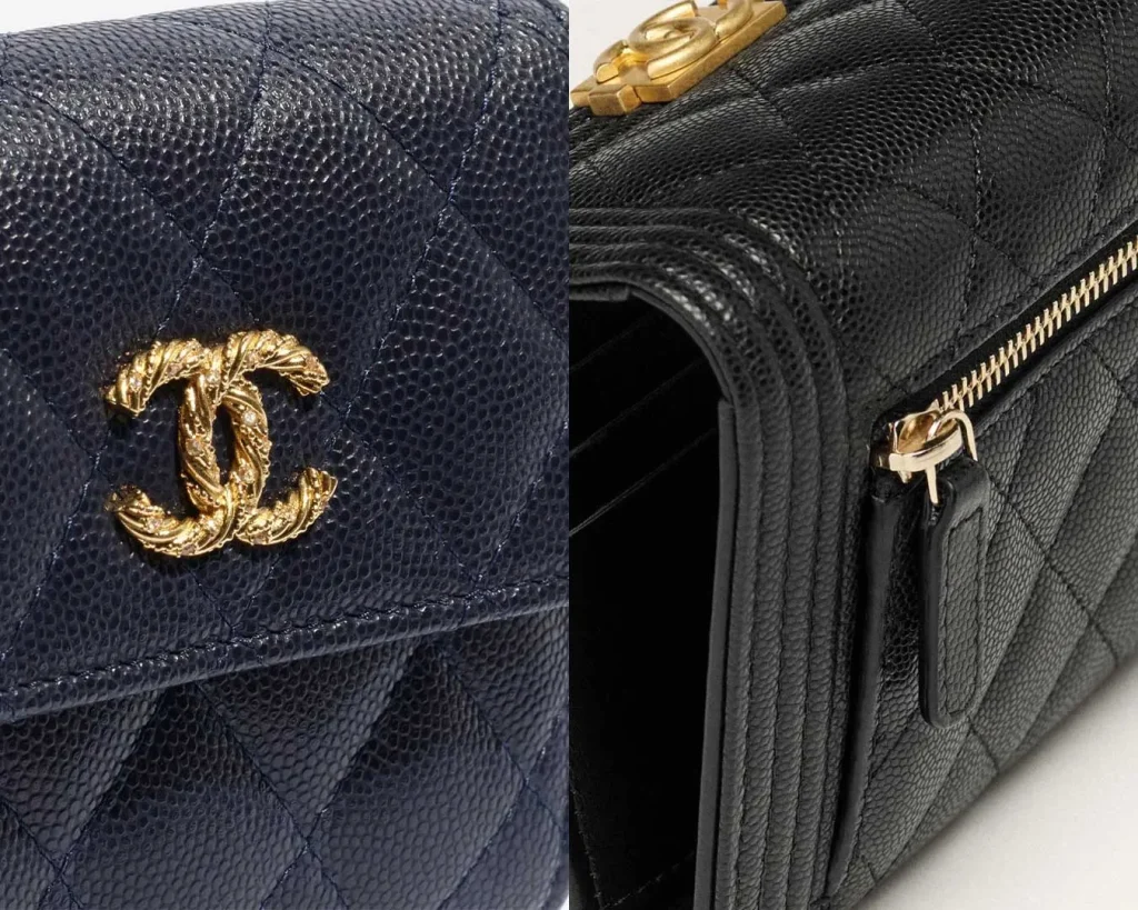 “หนัง Caviar” คือหนังวัวแท้ (Calfskin) ที่ผ่านกระบวนการปั๊มลายเม็ดละเอียดคล้ายไข่ปลา Caviar จนได้ texture ที่นูนเล็กน้อย สัมผัสแน่น และให้ความรู้สึกแข็งแรงกว่าหนังชนิดอื่น ๆ ของ Chanel เช่น Lambskin ลักษณะเด่นคือ พื้นผิวแบบเกรนละเอียด (Grained Texture) ที่ช่วยให้หนังดูแพงขึ้น และยังช่วย “พรางรอยขีดข่วน” ได้ดีเยี่ยม เหมาะกับคนที่ใช้กระเป๋าในชีวิตประจำวันแต่ยังอยากดูหรู