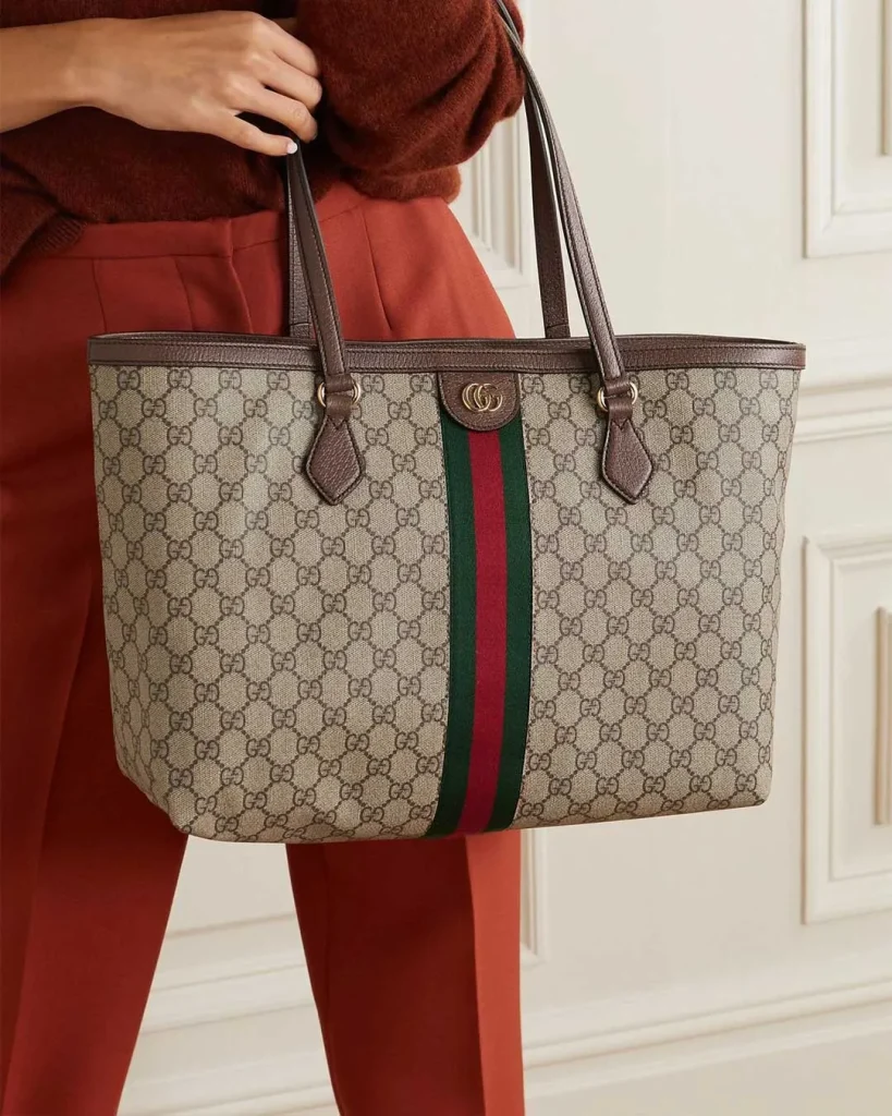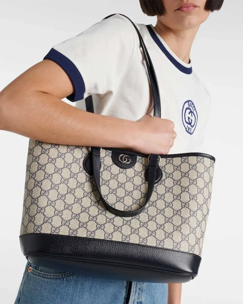 The Gucci Ophidia GG Tote (Large) is one of the totes that most clearly reflects Gucci’s DNA – from the GG Supreme canvas, the green-and-red Web stripe, to the gold Double G logo at the front.