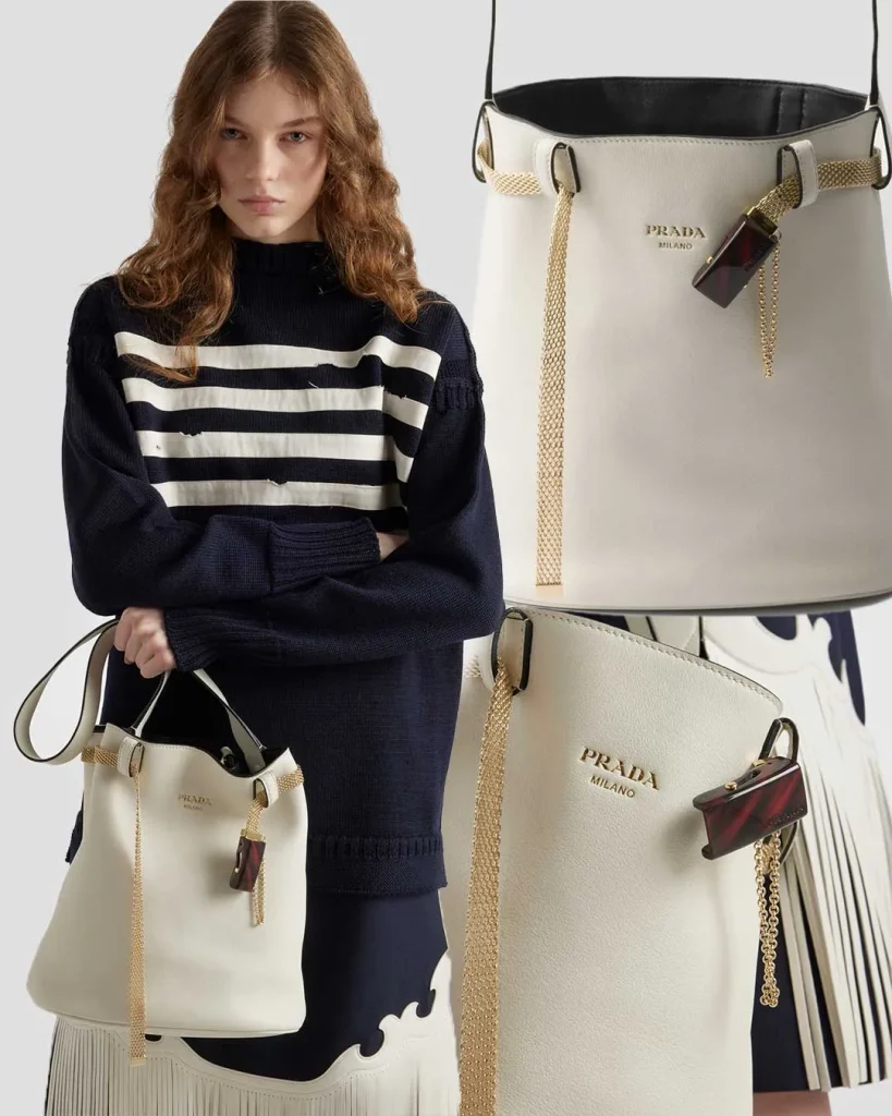 Prada Buckle Bag คือหนึ่งในกระเป๋าที่สร้างกระแสแรงที่สุดจากรันเวย์ปี 2025 โดยได้รับแรงบันดาลใจจาก “เข็มขัด” (Buckle) ที่ถูกตีความใหม่ในรูปแบบกระเป๋าทรง East-West ซึ่งกำลังเป็นดีไซน์มาแรงในวงการแฟชั่น กระเป๋าใบนี้ผสมผสานความเรียบหรูตามแบบฉบับ Prada เข้ากับความทันสมัย จนกลายเป็น It Bag ที่ทั้งคนดังและแฟชั่นนิสต้าทั่วโลกกำลังจับตามอง