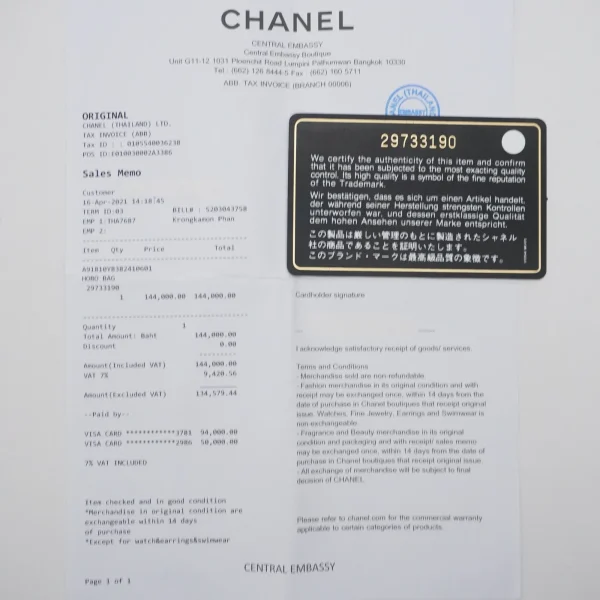 อุปกรณ์ : การ์ด / ถุงผ้า / กล่อง / ใบเสร็จ